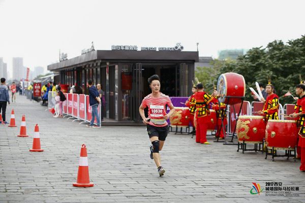 人民网北京9月11日电 2017西安城墙国际马拉松赛于昨日上午8:00鸣枪开赛。作为世界唯一将赛道设置在完整城墙之上的马拉松赛事,城墙马自举办以来就备受广大跑友的关注。今年亦是如此,来自美国、澳大利亚、法国、日本等13个国家和地区的3000名运动员齐聚古城墙,共同见证了这场历史文化与体育竞技相融合的跑步盛典。