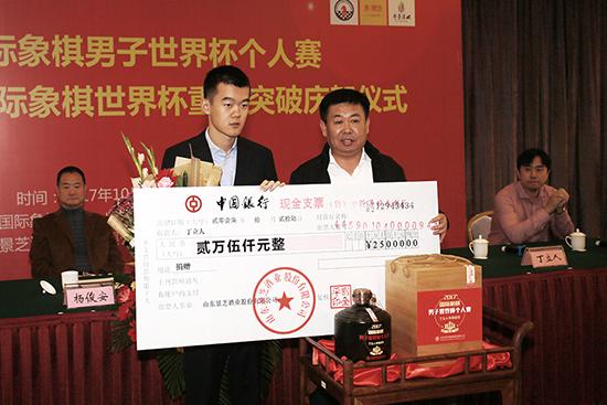 当天的活动中,山东景芝酒业股份有限公司董事长刘全平为丁立人和卜祥志颁奖。他透露,以后会重点加强与棋类项目的合作,为国际象棋事业的发展贡献自己的力量,“预祝中国国象队取得更加辉煌的成就”。