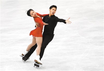 11月11日,隋文静(左)/韩聪在比赛中。