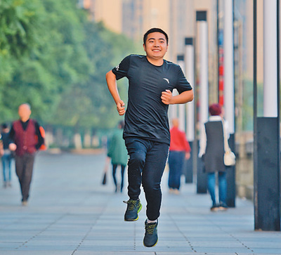 熊军奔跑在重庆市万州区北滨路上。 冉孟军摄