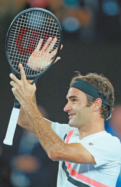| 1月28日,费德勒赛后向观众致意。 |
