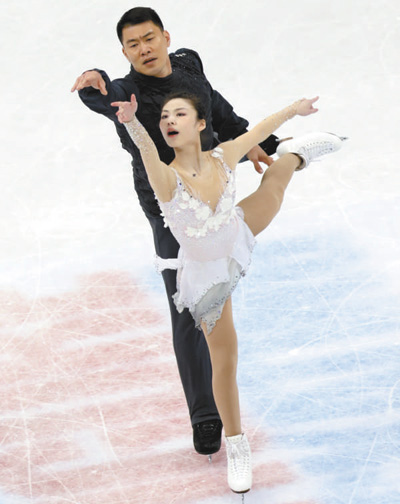 2017年3月30日,于小雨(右)/张昊在花滑世锦赛双人滑自由滑比赛中。新华社记者 刘力航摄