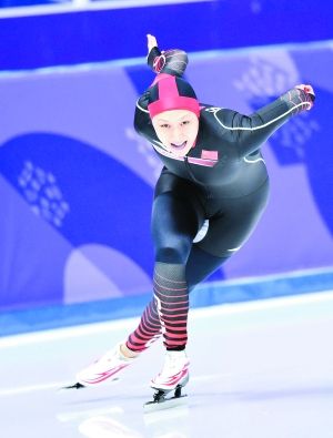 张虹在速度滑冰女子1000米比赛中。本报特派记者 白宇摄
