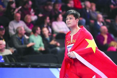当成绩显示在大屏幕上,苏炳添挥拳庆祝这来之不易的奖牌,他从看台上接过一面五星红旗,身披红旗绕场一周庆祝胜利。