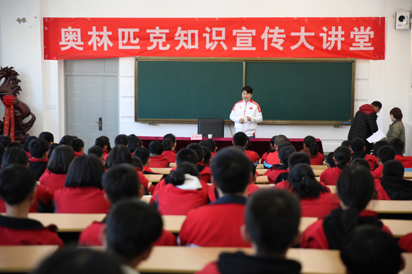 崇礼一中的学生们在奥林匹克知识宣传大讲堂上学习奥林匹克知识