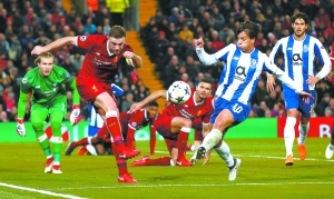 另一场比赛中,首回合客场取得5比0大胜的利物浦回到安菲尔德可谓全无压力,两队历史战绩利物浦也是3胜2平保持不败。本场两队最接近破门的机会仍是红军制造,第31分钟米尔纳斜传,马内在禁区右侧12码处的劲射命中远角立柱弹回。此后双方都没有获得进球良机,最终0比0战平。一场平局已经足够利物浦时隔9年重返欧冠八强,本赛季利物浦从附加赛打起,两回合6比3淘汰了德甲劲旅霍芬海姆挺进正赛。小组赛面对塞维利亚、莫斯科斯巴达和马里博尔,虽然前两轮仅战平塞维利亚和莫斯科斯巴达,但红军在对阵马里博尔的主客场比赛中轰入10球拿满6分,再度战平塞维利亚后7比0横扫莫斯科斯巴达,时隔8年再次入围欧冠淘汰赛。作为夺得欧冠冠军次数最多的英格兰球队,利物浦曾五次捧起“大耳朵杯”,如今红军重新杀回,让任何球队都不敢轻视。