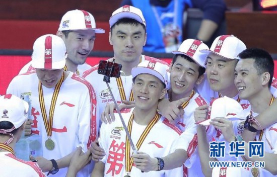 ↑辽宁队球员在颁奖仪式上自拍新华社记者王东震摄