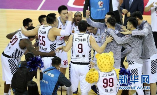 ↑辽宁队球员在获胜后庆祝新华社记者李钢摄