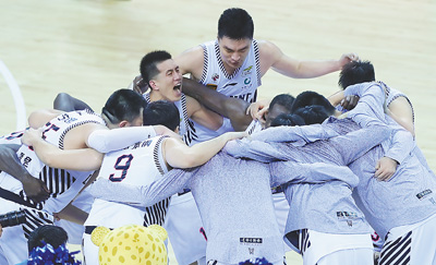 | 4月22日,辽宁队球员在赛后庆祝夺冠。 |