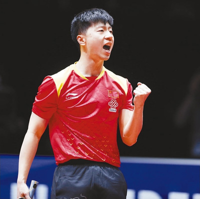 5月6日,中国队选手马龙在比赛中庆祝。KiS安康新闻网