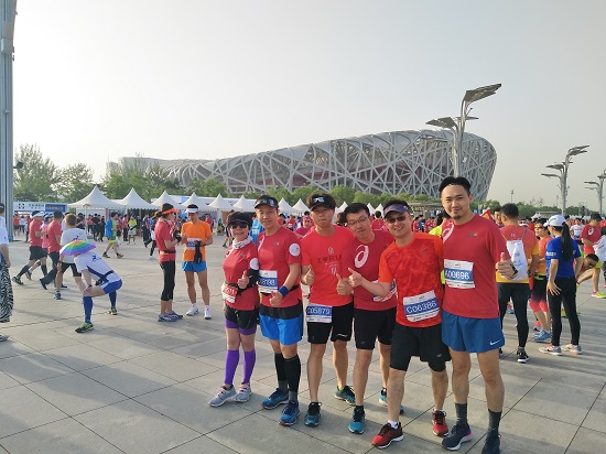 我们首都媒体跑团在赛前也曾就这个问题在群里展开讨论。有观点认为,去年既然已做好了参赛服若弃之不用,既浪费又不环保,对组委会的做法表示理解。也有观点认为,无论什么原因,2018鸟马跑者穿着印有“2017”字样的参赛服总有些遗憾。在长达几个月的准备时间里,应该可以找到解决问题的办法……讨论很热烈,从中能感受到大家对鸟马的重视和关心,真诚地希望它越办越好,成长为北京马拉松赛事中一个独特的、优质的品牌。