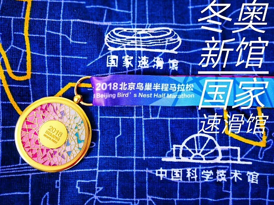 今天的赛事组织,平稳有序,补给充足。奖牌设计更是用心――除了有大大的2018字样外,奖牌正面的设计元素取自鸟巢俯视全景,每一个钢结构梁幻化成色彩纷呈的幻彩图案,而背面是由十个同心圆组成,十个同心圆记录十载岁月!