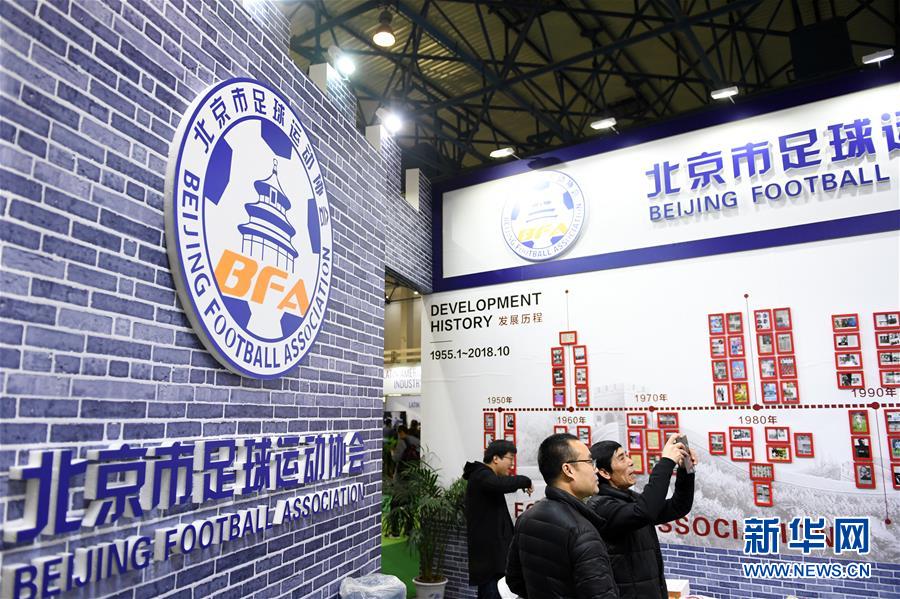 参观者在北京市足球协会展区参观。新华社记者鞠焕宗摄L6E安康新闻网