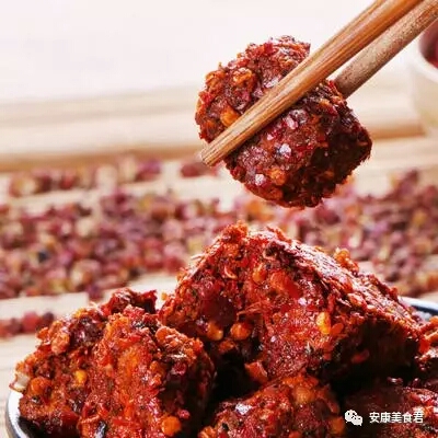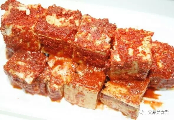 安康,一般这里的人只接受红腐乳,(因为白腐乳和青腐乳还是很臭的),每个县区都有自己做豆腐乳的绝招,也有每个县的特色,有的地方认为豆腐乳越臭越好吃,有的则觉得辣的好吃,甚至有的直接带毛吃(此处一会给具体解释)。