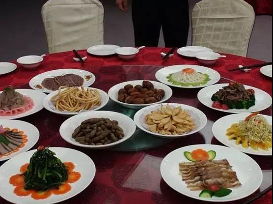 开席便有八个凉菜,中间置一拌凉菜的大盘,将凉菜适量放入中间空盘,再将调好的拌菜汁子浇上,搅拌均匀便可食用,称之为和菜。第一道热菜均为汤,并大多为鸡丝鱿鱼粉丝汤,此道菜香浓无比,为开胃之汤。其他热菜有莲菜盒子、羊肉小炒、萝卜炖羊肉、菜蔬小炒、干豇豆炒腊肉、汉江鱼块、鸡蛋肉糕汤等等。八道菜品虽无鱼鳖海怪、熊掌鹿鞭、天鹅大雁等稀世奇珍,但却包含着一缕浓浓的家常气息,反到更是余味绕梁,数日不绝。