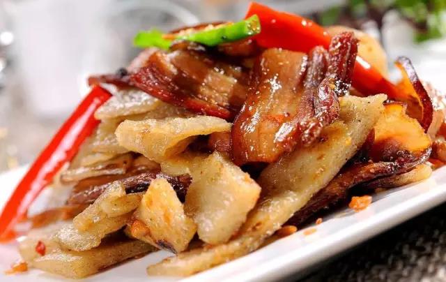 洋芋粑粑炒腊肉原是镇坪老百姓桌上的家常小菜。是用洋芋制品和镇坪特色腊肉合成的一道菜肴。新鲜的洋芋粑粑,配以鲜红的五花腊肉,洋芋粑粑充分吸收了腊肉的油脂,显的越发的饱满晶莹。再加入新鲜的本地辣椒,花椒,蒜片,葱节,姜片。用农村烧柴禾的大铁锅煎炒,诱人的醇香散发着浓浓乡情,红黄白绿色泽鲜亮,腊肉肥而不腻,洋芋粑粑滑润爽口。
