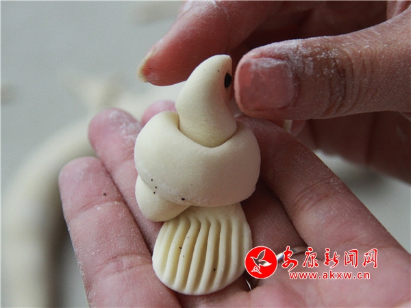 花馍技艺传承人胡志霞告诉记者:“刚开始就是觉得这个制作过程很有趣,一双手能做出那么多造型,惊讶之余就特别想去学习这个手艺,那时候做花馍都是由家中长辈制作,自己在一旁看着不能轻易上手,所以我经常都是用地里的泥巴来练习做花馍,不知不觉还真让我学会了不少花馍的样式。但是现在大家都一门心思想着挣钱,年轻一代的更是耐不下性子来学习制作花馍,而蒸花馍又是个费神劳力的力气活,和面、醒面、揉面,既讲究干湿均匀,又要注意力道,还要求制作者必须具备精熟的技艺,否则这普通的面团很难做成各种栩栩如生的小动物或花儿形状的花馍。”