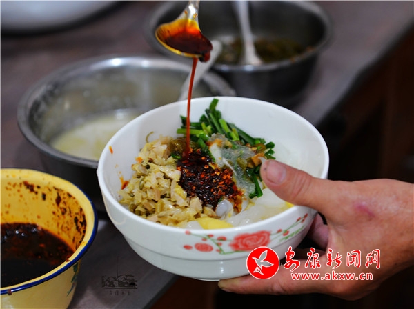 安康面鱼儿,也有两种不同的吃法,一种是汉阴的,叫“科马古得儿”,面鱼儿是白色的,用米粉做成,浇醋汤子吃;另一种是安康的,叫“浆水面鱼儿”,面鱼儿有黄色、白色两种,黄色用包谷面,白色用米粉或菱角粉做成,配着浆水、浆水菜、大蒜辣子、炒韭菜和油泼辣子吃。7XB安康新闻网