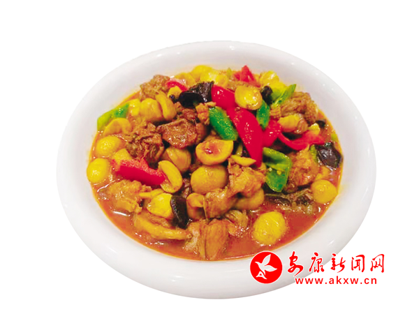 这道特色菜是把散养土鸡洗净剁成小块,剥好板栗,在锅里放菜籽油烧红,加入少许干辣椒、花椒、豆豉炒香,再放入鸡块,大火煸炒变色,调入生抽、少许耗油、冰糖炒匀,汆入没过鸡块的清水烧开,再放入板栗,火焖15—20分钟,放入青红椒调色,收汁装盘。这道菜鸡肉鲜美,板栗香甜,汁浓醇厚,色泽红亮,真是吃货们的口福。