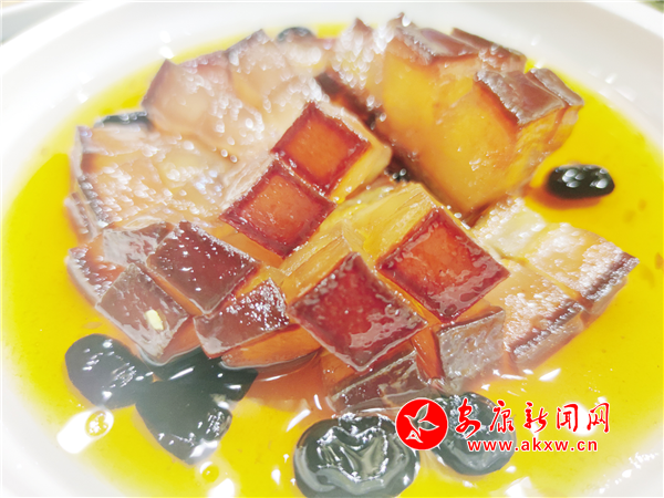 推荐理由:这道菜选用肥瘦相间的五花肉,切成小方块,配以红枣、蜜汁调味,大火蒸制成型后,菜品形色如樱桃般嫣红诱人,味道酥烂肥美,甜香丰腴、入口即化,是色香味俱全的美味佳肴,摆在席面上,好看又好吃,且颜色喜人,寓意很好,是一道非常适合宴请宾朋时品尝的菜肴。