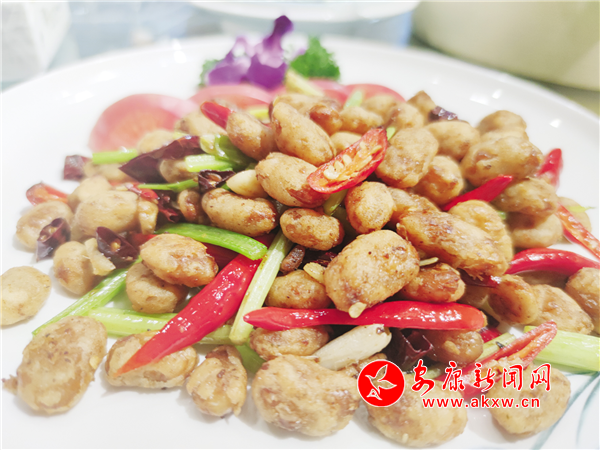 推荐理由:据厨师介绍,香辣白芸豆是先将干的芸豆浸泡,然后加入辣椒、香叶、葱姜等多种调味料把芸豆煮至熟烂,再将煮好的芸豆裹上一层面糊下锅炸至表皮焦黄,佐以嫩芹菜杆、香蒜和红辣椒炒制,一道酥香可口、内里绵软的香辣白芸豆就做好了。