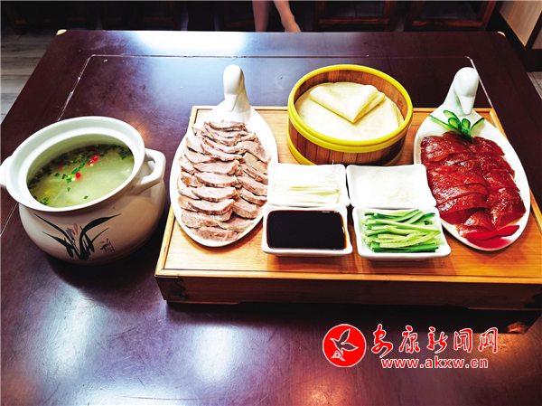 美味故事的烤鸭是我每次宴请亲朋必点的一道菜,鸭子原材料用的是北京填鸭,具有填食时间短、育肥快、肥瘦分明、皮下脂肪厚、鲜嫩适度、不腥不酸等特点,是制作烤鸭的上等原料,在制作方法上采取“明厨亮灶”方式,并根据陕南人的口味,搭配上各种秘制佐料,烤制黄亮,皮质酥脆,肉质细嫩,配上果酱、葱丝、黄瓜丝卷饼,吃起来味道醇厚,肥而不腻,口舌生香是一道不可错过的舌尖美味。