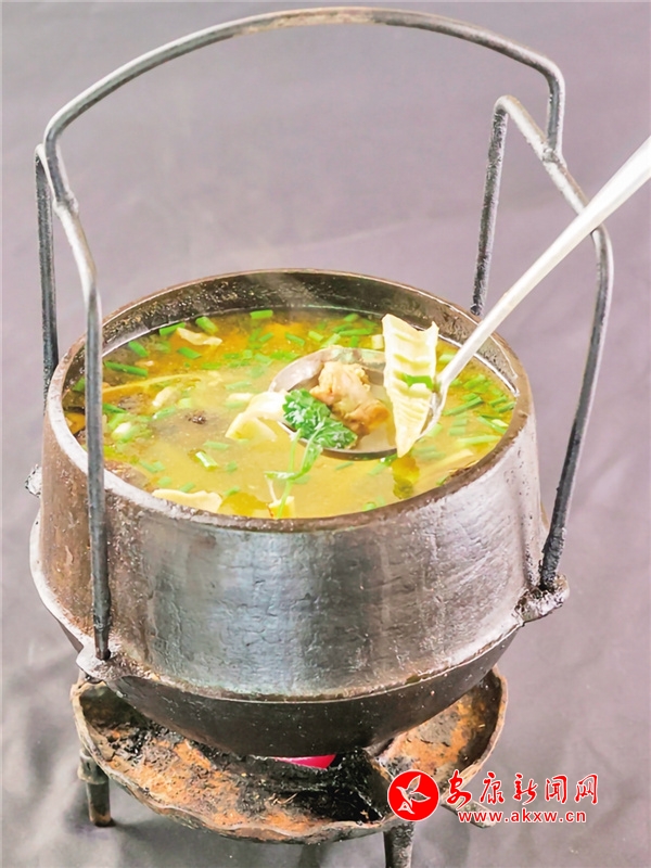 汉阴县城关鑫遥农庄——白火石汆汤陕西省非物质文化遗产之一,中国最古老的烹饪菜肴中的“活化石”。将白石脂烧红后汆入汤中,用石头的热量将食材激熟……
