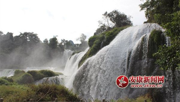 沿着河滩的花径向前继续走,将进两公里的二浪滩美丽如画的青石山、绿水,更不堪说。沿途观山越景也不知道累和饿。台头向前看,只见前面不远处一座锒白色的汉江大桥向一条巨尤腾空而过在江面上。最让人们不可思议的是汉江水面上突来一泓清流从大桥正中下穿流而过,在桥上形成宽阔的瀑流注入身边这个大河。我们几个任意沿桥两边,随行人顺台梯而上,无论向哪个方向眺望,远山、近水、花木、房舍都自成一幅匠心独运的山水画卷。大家连连感叹这世间竟有如此勾人魂魄的秘境。在仔细打量这座大桥,原来这就是石梯镇新建的一座富民桥。桥正面,魏然屹立的政府大楼上空红旗飘杨,标志着石梯人民勤劳勇往向上的精神。