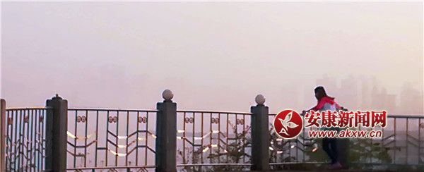 站在河岸,对面的山川若隐若现,格外美丽。晨雾渐浓,三桥、博物馆、房屋、建筑等瞬间被隐藏其中。远处的村庄,如一张张完美的山水画,在雾中游荡。镶嵌在雾中的城市,如海市蜃楼,美得令人窒息。伴随着日出,天空渐蓝,一缕阳光透过层雾把整座城市打扮的格外神秘。一位游客想极力挽留住这美丽的瞬间,站在岸边,久久不愿离去。