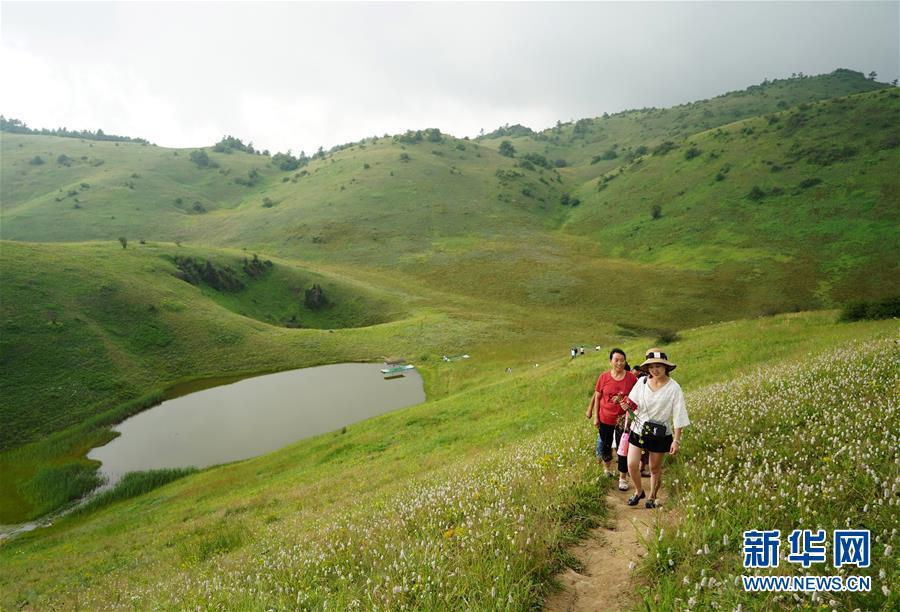 在陕西岚皋县与重庆城口县交界处的大巴山主脊上,坐落着一片高山草甸——神田草原。入夏,这里碧草千顷,野花漫山,气温凉爽,云雾变幻,成为游客休闲避暑的好去处。 新华社记者 邵瑞摄bKn安康新闻网