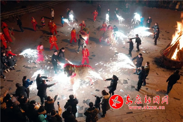 石泉县池河明星村沧海桑田旅游景区开园迎客,丰富多彩的传统民俗活动让市民和游客乐享其中,精彩纷呈的节目闹红正月里,浓浓的乡情、浓浓的年味儿环绕在明星村里。上至耄耋老人,下至总角幼童,演出的群众演得尽兴,观看的村民看得开心,既为乡村春节增添了快乐和喜庆,也展示了新农村、新农民的新风貌。最刺激的还属石泉火狮子,作为陕西非物质文化遗产的火狮子在石泉人心中不仅代表着年味,更象征喜气祥和,在热烈的锣鼓声中,狮子摇头摆尾舞动,烟花爆竹交融,腾挪跳跃,真可谓“金花四射神狮舞,电闪雷鸣映长空”。