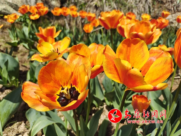 从远处望去,郁金香整整齐齐地排列着,阵阵微风吹过,摇曳生姿。凑近看,郁金香花一朵挨着一朵,花瓣重叠,鲜艳得像要滴出水来。时不时还有几只蝴蝶蜜蜂萦绕在花间,享受着春天带来的丝丝甜蜜。在暖阳的照耀下,盛开的花朵随春风摇曳,不同颜色、不同品种的郁金香呈现出了极佳的视觉效果,花丛中,游客三五结伴,赏花、拍照,享受繁花绕膝之美。
