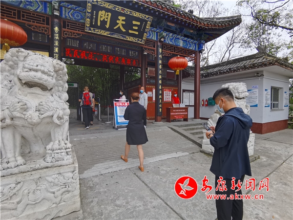 部分志愿者在志愿服务驿站为游客朋友提供咨询服务、同时备有普通应急药品,清凉油、藿香正气水等防暑降温物品供游客适用。一旁的工作人员在景区出入口引导游客配合测温、查验健康码、扫场地码、异地游客查验48小时核酸阴性证明等,用实际行动助力全国文明城市创建。 SLg安康新闻网