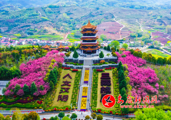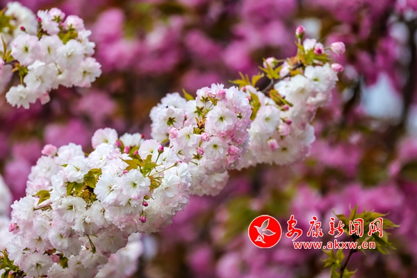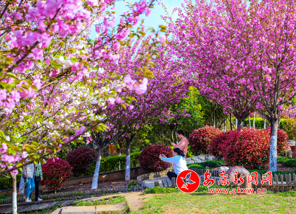近日,在汉阴县龙岗公园,成片樱花竞相开放,形成一片红粉为主、白色点缀的烂漫花海,蔚为壮观。EJ8安康新闻网