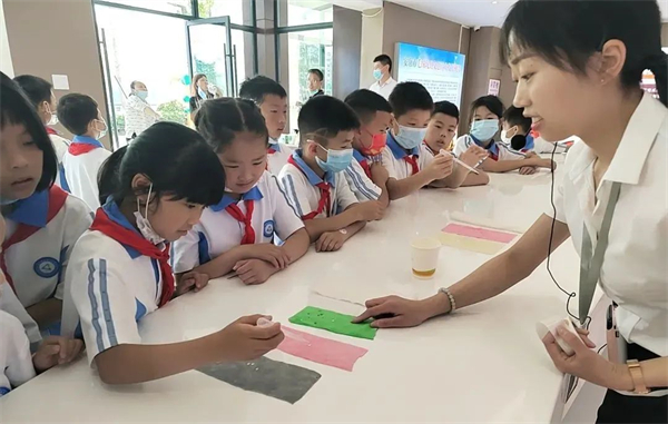 在这里可以体验的活动有:一蚕茧手工DIY,孩子们可以充分发挥自己的想象自己创作;二是剥茧抽丝课堂,孩子们可以亲手体验缫丝的神奇,将一根根蚕丝拧成一股绳感受古人的聪明智慧;三是微观世界课堂,让孩子们学习显微镜的构造与使用,体验微观世界的神奇,亲自动手制作桑叶标本,观察并记录了显微镜下桑叶的形态特征,最后还可以近距离观察蚕宝宝,沉浸式体验蚕桑教育文化。