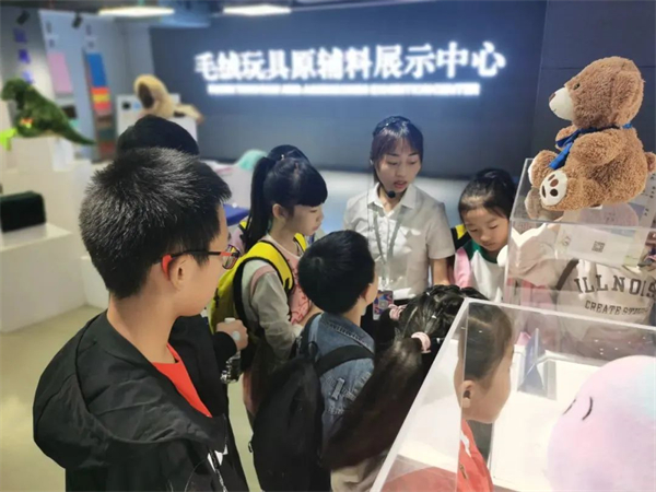 第三站为原辅料研发生产基地(安贝斯孵化园),孩子可以了解到毛绒玩具产业链的总体知识,并对厂房内部进行参观;第四站为玩具研发生产基地(恒安玩具工厂),可以依次参观绣花车间、车缝车间、手缝车间、质检车间,了解毛绒玩具的工艺与生产过程;第四站是毛绒玩具五大中心,在前三站对毛绒玩具了解的基础上,对毛绒玩具进行总结,之后可以体验抓娃娃机、扭蛋机、购买毛绒玩具。