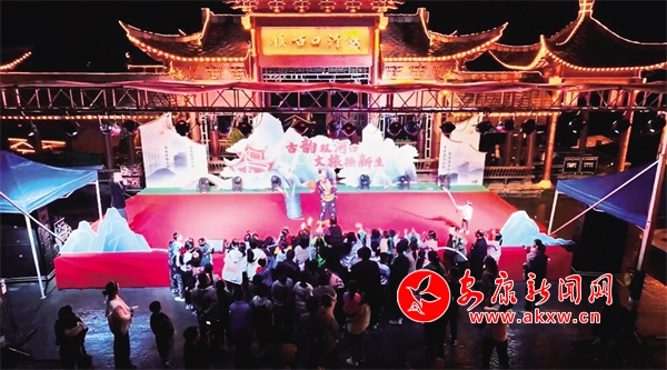 汉阴县双河口古镇景区正在进行文艺演出。王建霞 摄