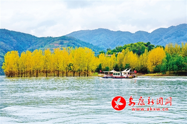 10月3日,秋日的瀛湖如诗如画,吸引众多游客前来打卡。周濬 摄