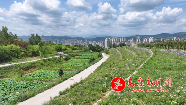 四周是青山,但山脚的地势却十分平坦,泥土蓬松柔软,一套长长的小河,从这头流向那头。河水澄澈明净,可以看见水里的沙石。一群洁白的鸭子在水中欢快地游着,时而抖抖身上蓬松的羽毛和天鹅嬉戏。天鹅红嘴,白身子,在阳光的照耀下,白中透着点红色,着实漂亮,群群银白色的小鱼围着河中的水草戏耍。一只鹭鸶扇动着白色的翅膀,长长的尖嘴,细长的腿在天空划过美丽的倩影,嘴里那条银白的小鱼仍闪着亮光。河道分支一条笔直的水渠,灌溉着一畦畦的农田。河堤岸是宽阔的乡村机耕路。乡村公路穿梭着来来往往汽车和人群。河两边依依的杨柳,为它们挡住了正午强烈的阳光,形成了一道天然的绿荫。站在马路上,凉风习习,香气阵阵,让人感到十分舒适。