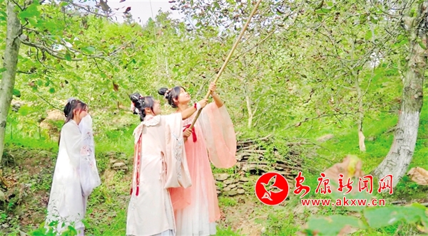日前,汉阴县双河口镇举办“核”你有约 “桃”离喧嚣核桃采摘体验活动。吸引了众多游客前来参与,共同体验了一场穿越时空的文化之旅。据了解,该镇除了核桃采摘体验,还精心策划了古道徒步穿越、开展汉服游园,让游客们沉浸式体验古镇的古韵古风。(通讯员 贺珍珍 摄) GPr安康新闻网
