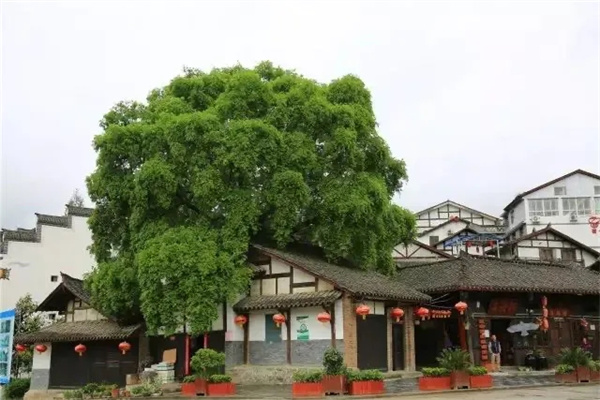 随着人流,我们远远地就看到后柳水乡最著名的那棵千年皂角树,清嘉庆皇帝曾御笔亲题“屋包树”三个大字。这棵"屋包树"距今有1600多年的历史,它从房中长出,伸出屋顶后伞盖全屋,浓荫蔽日,高约16米,树冠直径18米,树干需3人才能合抱,天南海北的游客在这棵树前纷纷驻足,感叹这奇特的景观,纷纷拍照留念。