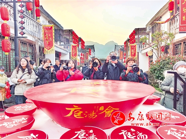 全国冬季“村晚”示范展示暨石泉县第十一届汉水庖汤会文化旅游活动日前在石泉县中坝作坊小镇举行。庖汤盛宴、非遗展演等丰富多彩的民俗活动,让全国各地游客齐聚石泉,吃庖汤、庆丰收,欢欢喜喜迎新年。