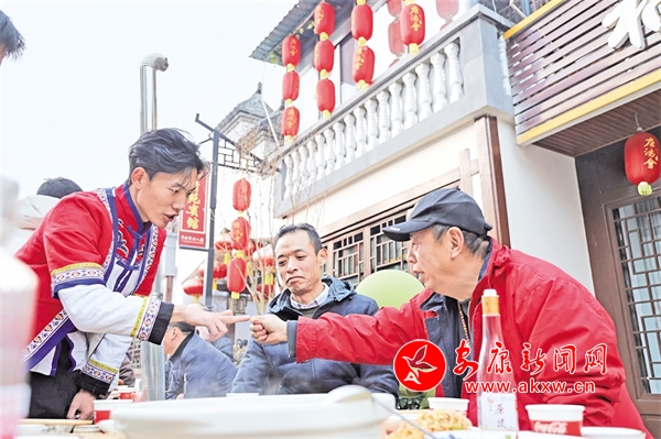 长街里的宴席上坐无缺席;一道道精美的庖汤佳肴陆续上场,席间,宾客们喝着美酒、品着美食、看着节目,欢声笑语不断。台上的节目精彩纷呈,让宾客们目不暇接,不时报以热烈掌声,充分展现了石泉县深厚的文化底蕴和独特的民俗文化。不少外地游客慕名而来,带着亲友来到石泉,亲身感受特色庖汤宴。豪迈的秦巴汉子激情划拳喝酒,在场的游客市民都沉浸在新年的喜悦中,举杯畅饮,现场热闹非凡,满满年味十里香飘……