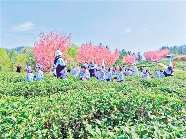 饭后阳光漫过茶垄的刹那,茶园正铺展着千年的风雅。我迫不及待换上采茶围裙踏入皇茶园,体验采茶、做茶的乐趣。指尖轻捻“一芽一叶”的嫩绿,在古法炭焙的铁锅里翻涌着时光的温度,待山泉水与雀舌相遇时,茶香便化作袅袅云烟,在青瓷盏中演绎生命的涅槃。