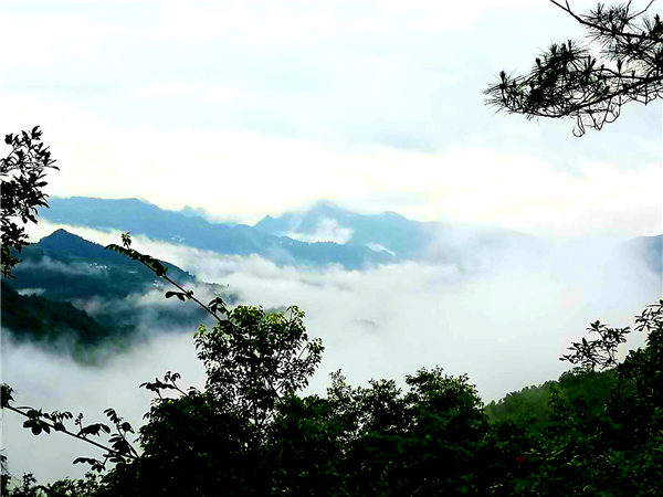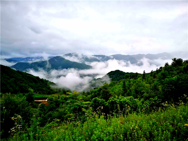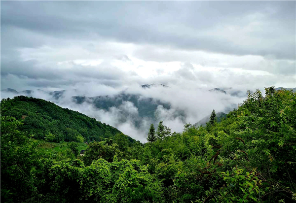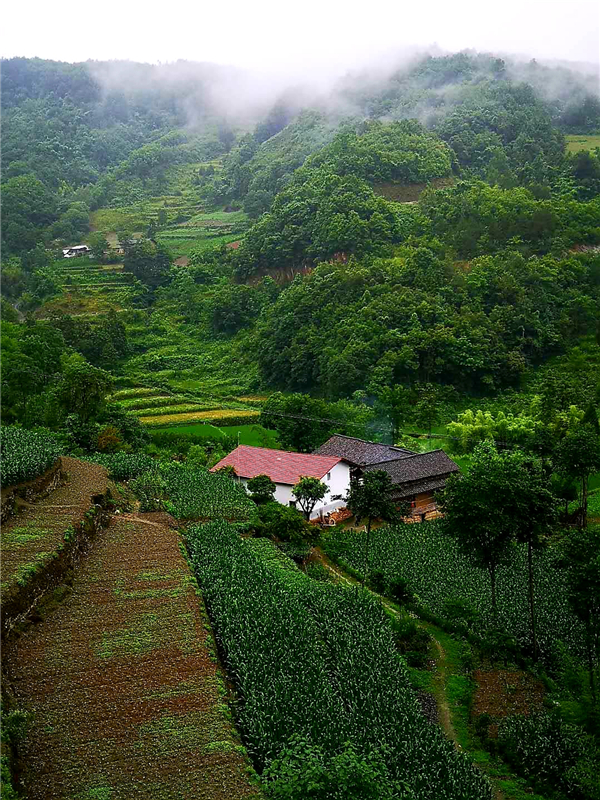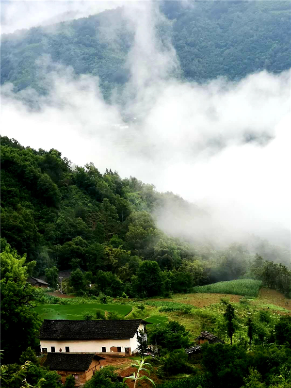 小桥,山涧的溪流;田园,吃草的耕牛;花草,池塘的荷花......一边淋着淅淅沥沥如发如丝的毛毛细雨,一边在薄雾朦胧中散步,置身在这天然氧吧中,看天看地看山看水看满山云雾缭绕,看自然和谐之美,看群山簇拥我于怀抱之中,空旷静谧中汲取一尘不染的力量与信念。极目所致,思绪万千,脑海里寄存的是古人话语“非淡泊无以明志,非宁静无以致远”,恐怕也只能是绿水青山中来实现自己的理想与愿望吧!