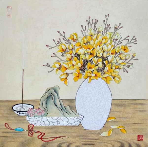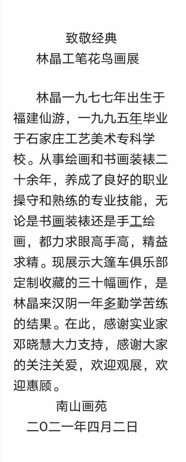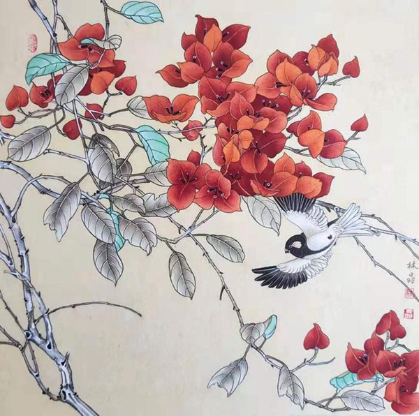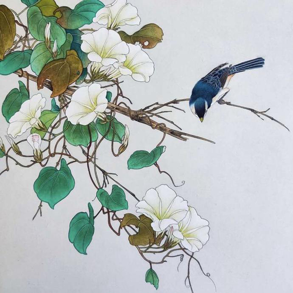 在墨介艺术领域,林晶沉醉于工笔的花鸟画,执着追求而不知疲倦,奋斗自己绘画梦想。品读女画家林晶的工笔花鸟画作,是一种心灵的感悟。他的画既吸收了古人严谨工细的用笔,又结合现代的隐线勾勒与层层晕染,体现出一种古雅清秀的印迹。