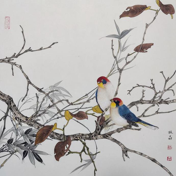 看现在林晶的绘画,工笔花鸟画可以说达到了惟肖惟妙,而且还有自己独具的气质内涵。她的工笔花鸟画,已经是掌握了精湛的传统技法,诸如布局、章法、线描,以及对留白的把控等,都是很到位的。而且她还将个人审美观融了进去,尤其是秦巴汉水的文人意趣体现,更有自己的色彩感觉,而其表现核心仍是传统的艺术审美观。
