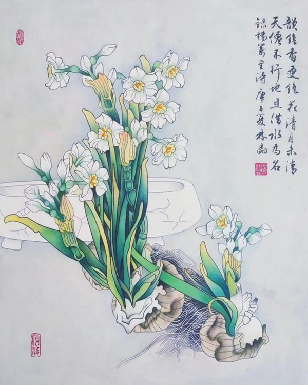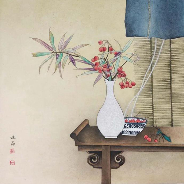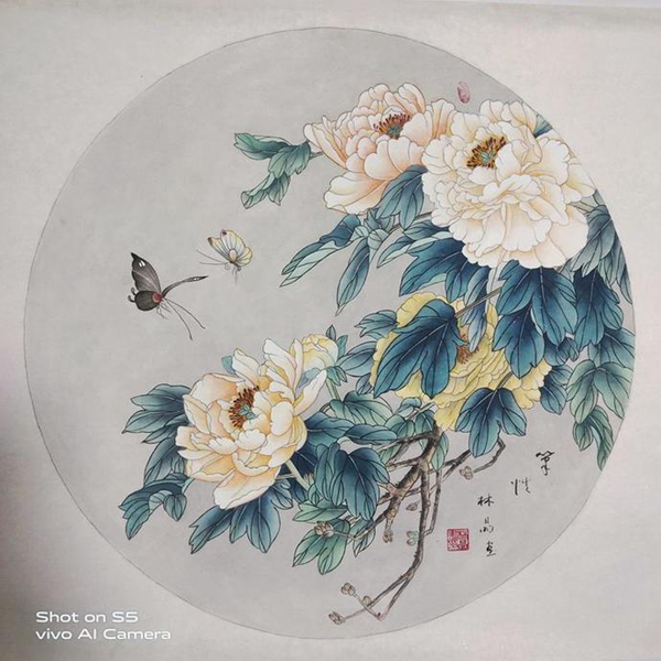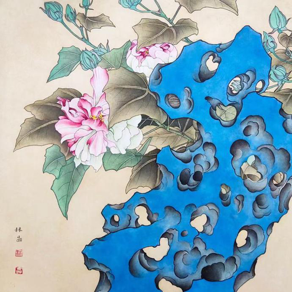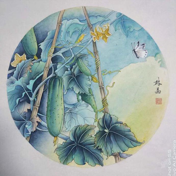 简而言之,林晶女画家的工笔花鸟画,无论在构图上、线条上、设色上都彰显出自己的“功夫”。她的每一幅画,都那样艳而不俗、淡而有味,让人有百看不厌的舒畅感。