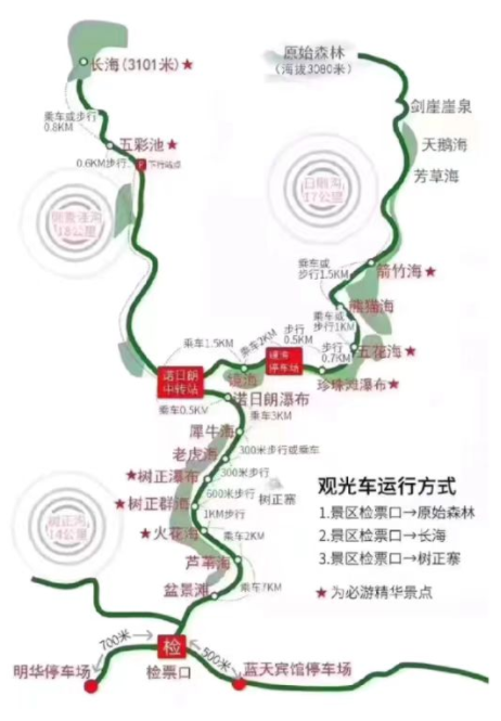 九寨沟就像高脚杯一样的一总二分一条沟。如图所示: