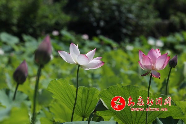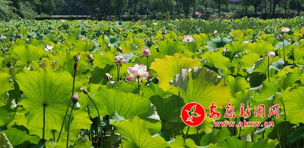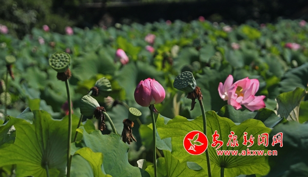 夏日里,荷花满塘,风姿绰约,撩人眼目。你看,荷池里的碧叶挨挨挤挤,接天映日。池中荷花千姿百态,盛放的花朵枕波而卧温婉可人,嫩黄的莲篷洁净无瑕娇羞惹人,饱胀的花苞好似随时蓬勃破裂。